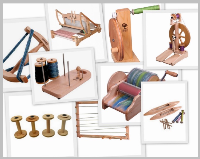 For spinning we have 3 wheels: an Ashford Kiwi Double Treadle Wheel, a Louet Victoria Wheel and an Ashford Traditional spinning wheel. All 3 wheels come with 3 bobbins, a Lazy Kate, a niddy noddy and a pair of hand-carders.